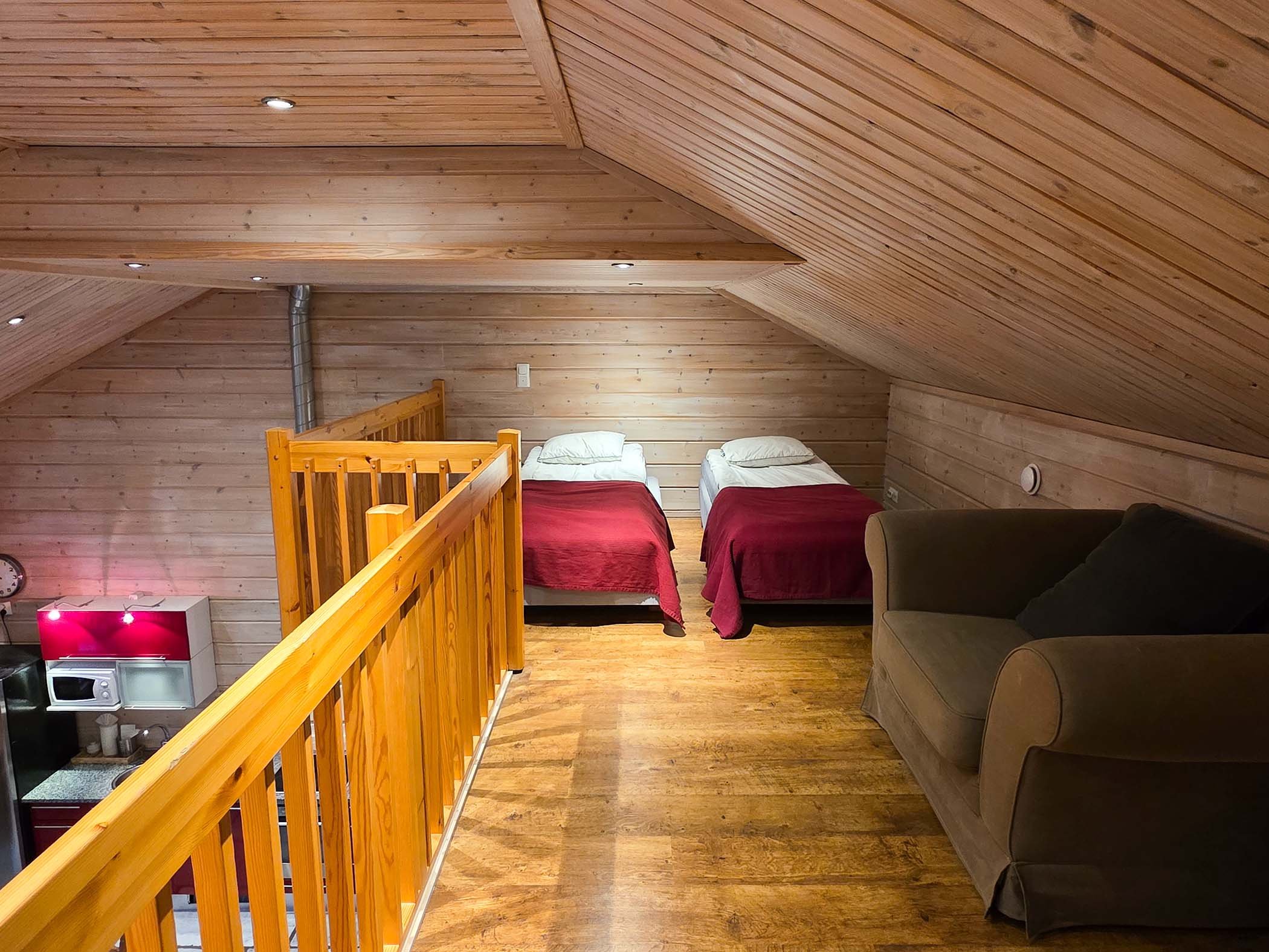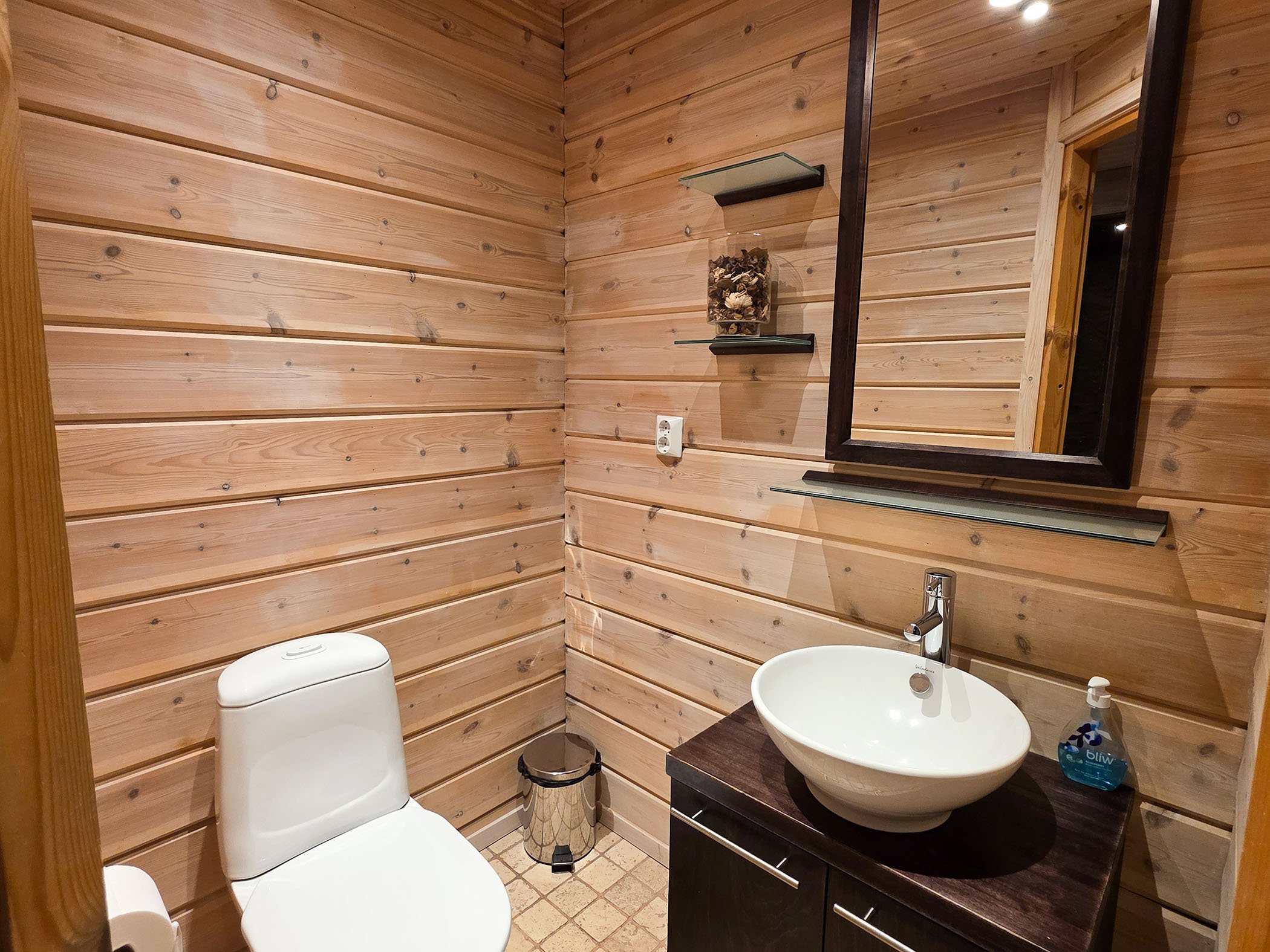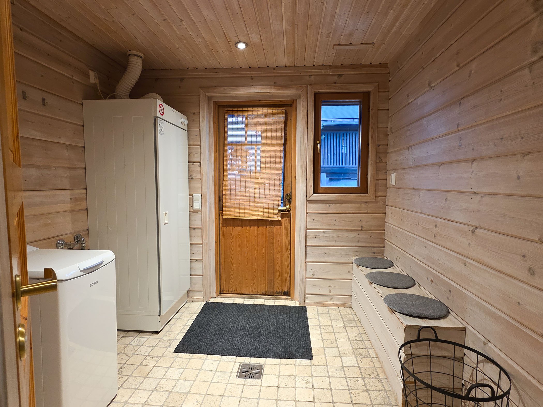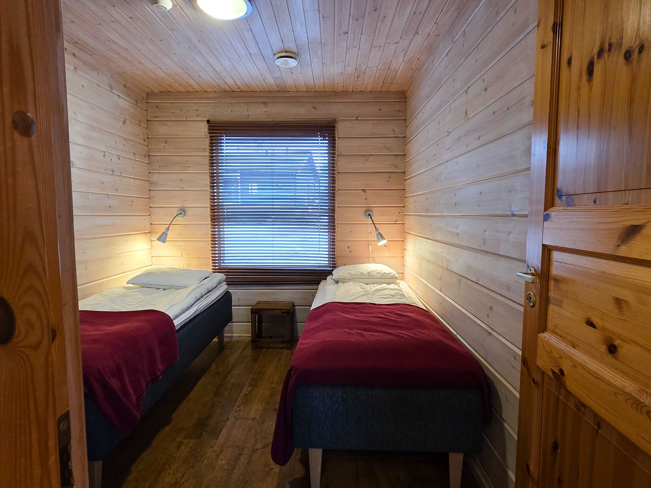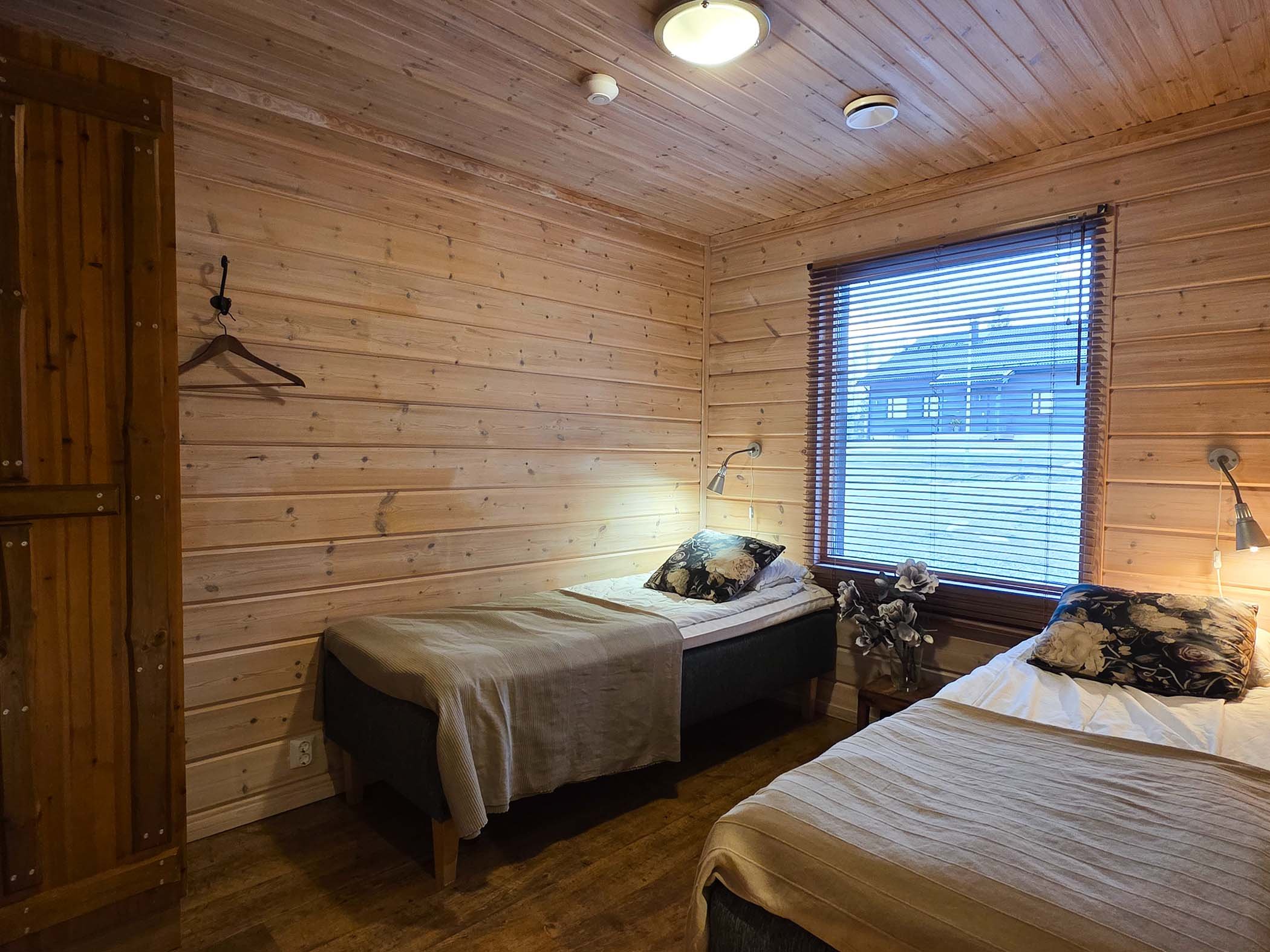 Huvilan pihassa on yksityistä pysäköintitilaa muutamalle autolle. Huoneiston alakerrassa on olohuone, keittiö sekä kylpyhuone ja sauna, josta pääsee kätevästi terassille ja ulkoporealtaaseen. Alakerrassa on lisäksi 3 makuuhuonetta, joissa kaikissa on kaksi erillistä vuodetta. Yläkerrassa on suuri puolikorkea parvi, josta löytyy yhteensä kuusi erillistä vuodetta.