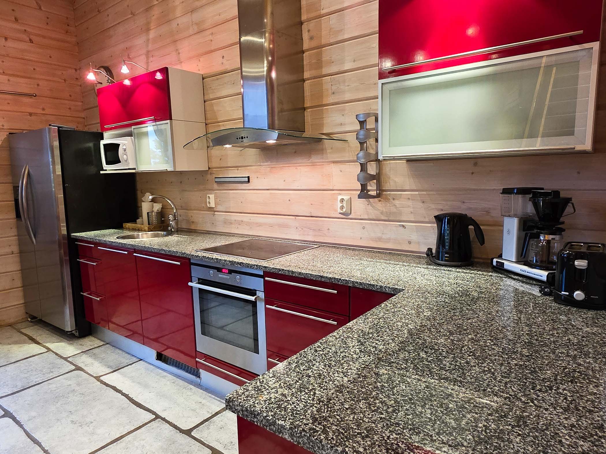 Tämä huvila soveltuu avarien tilojensa puolesta monenlaisiin tarpeisiin. Perheen laskettelureissun ohella suuri olohuone, avokeittiö ja upea paikalla muurattu kivitakka tarjoavat toimivat puitteet niin juhliin kuin yritysten kokouksiin. Juhlia varten on mahdollista vuokrata mukaan Bileet paketti ja kokouksiin esitystekniikkaa Kokous paketin muodossa.