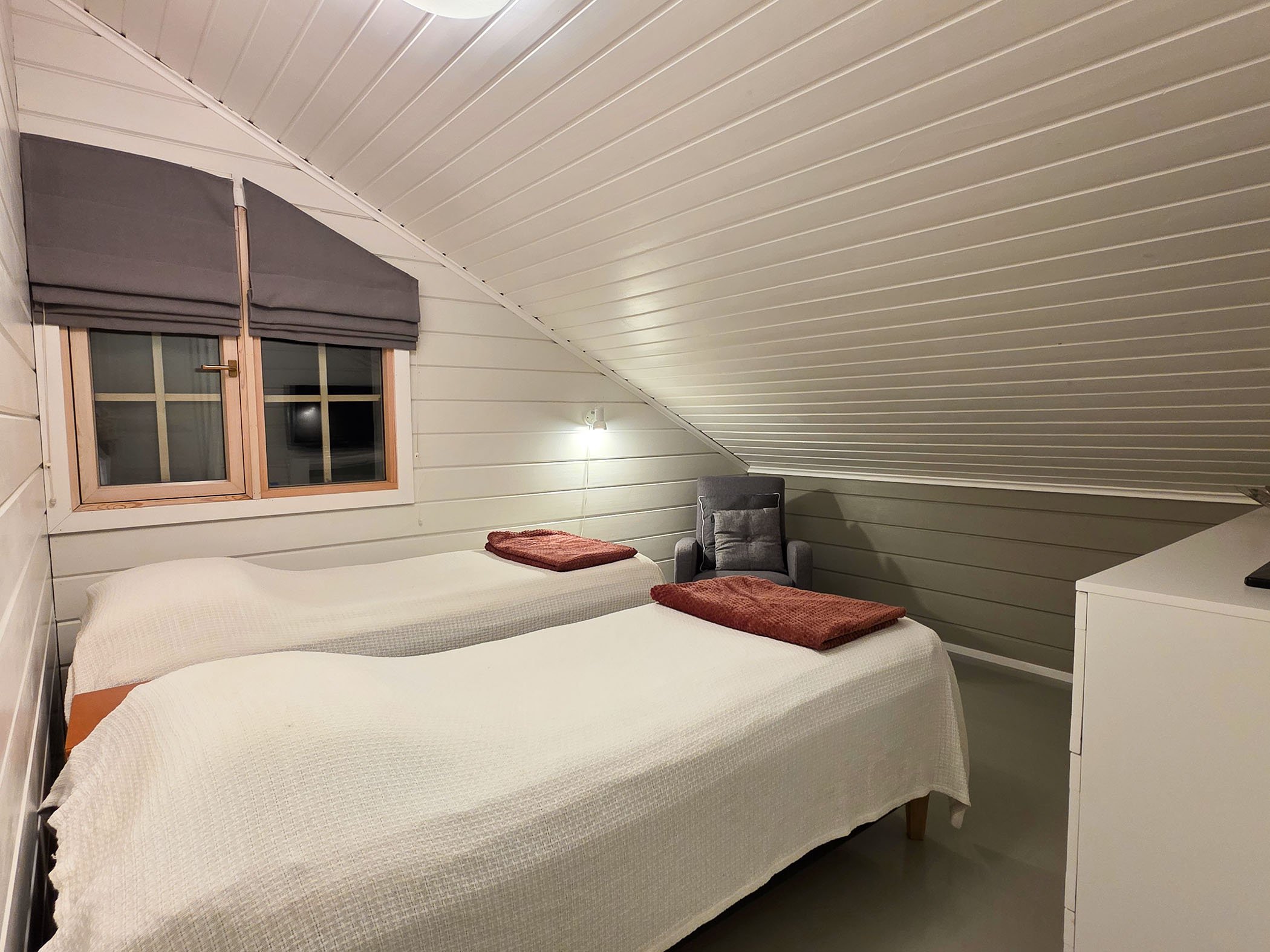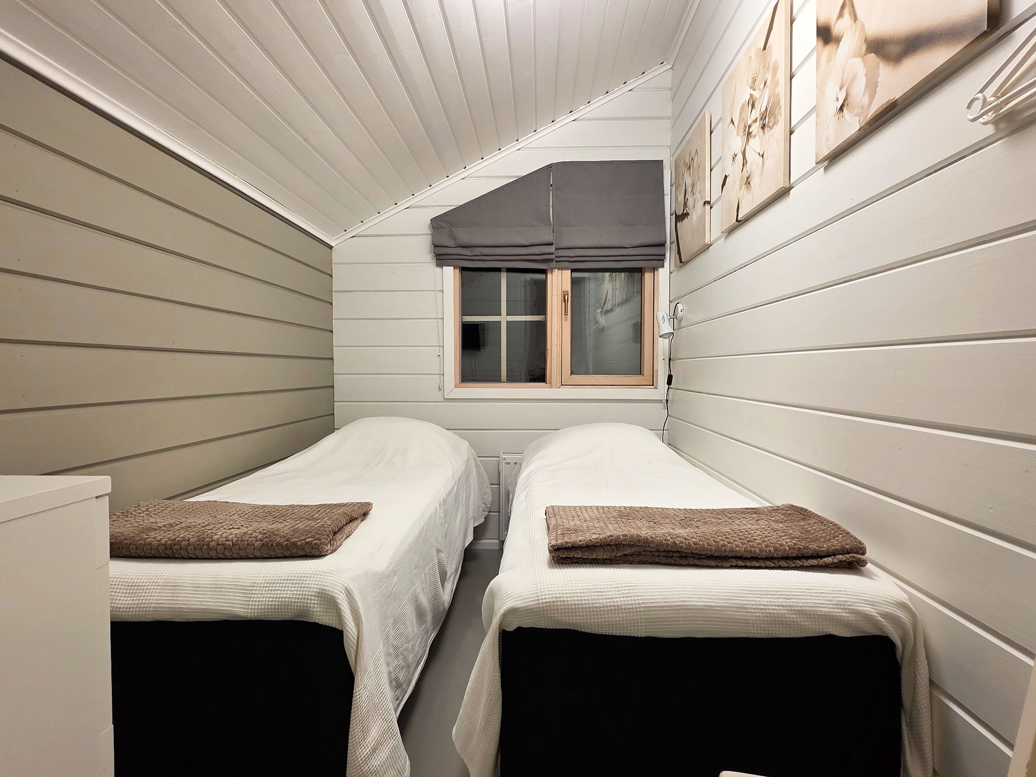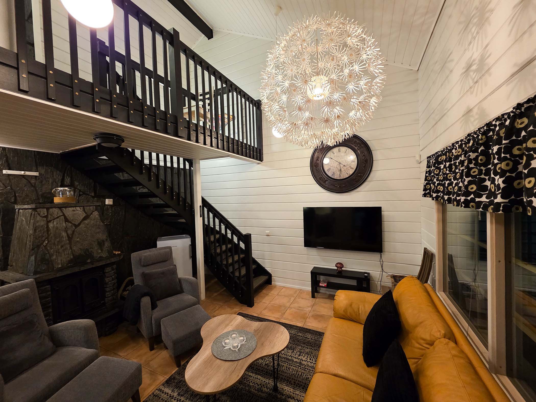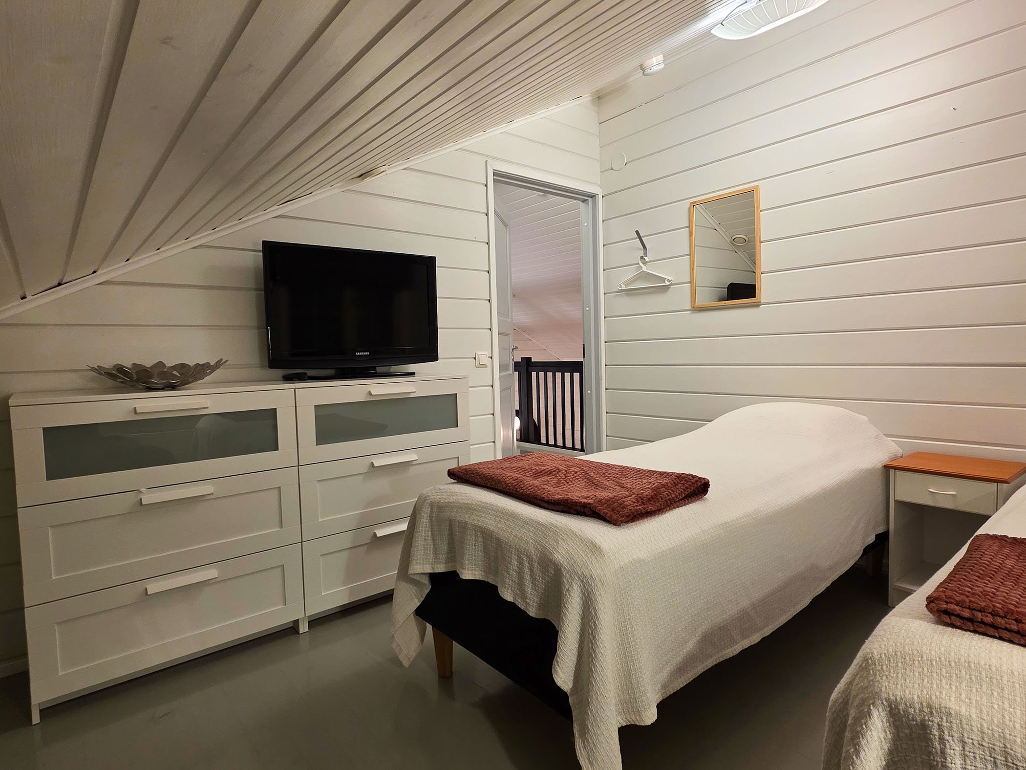 Kohteessa on neljä makuuhuonetta joista yksi sijaitsee pääkerroksessa ja loput kolme yläkerrassa. Jokaisessa makuuhuoneessa on makuupaikat kahdelle henkilölle. Jokainen makuuhuone on varustettu myös omalla televisiolla. Loma-asunnossa on kaksi erillistä wc:tä sekä erillinen kylpyhuone upealla saunalla. Kylpyhuoneesta löytyy myös pyykinpesukone, kuivausrumpu sekä kuivauskaappi. Kompaktissa keittiössä valmistuu lomaherkut käden käänteessä ja lisää kylmäsäilytystilaa tarjoaa extra jääkaappi.