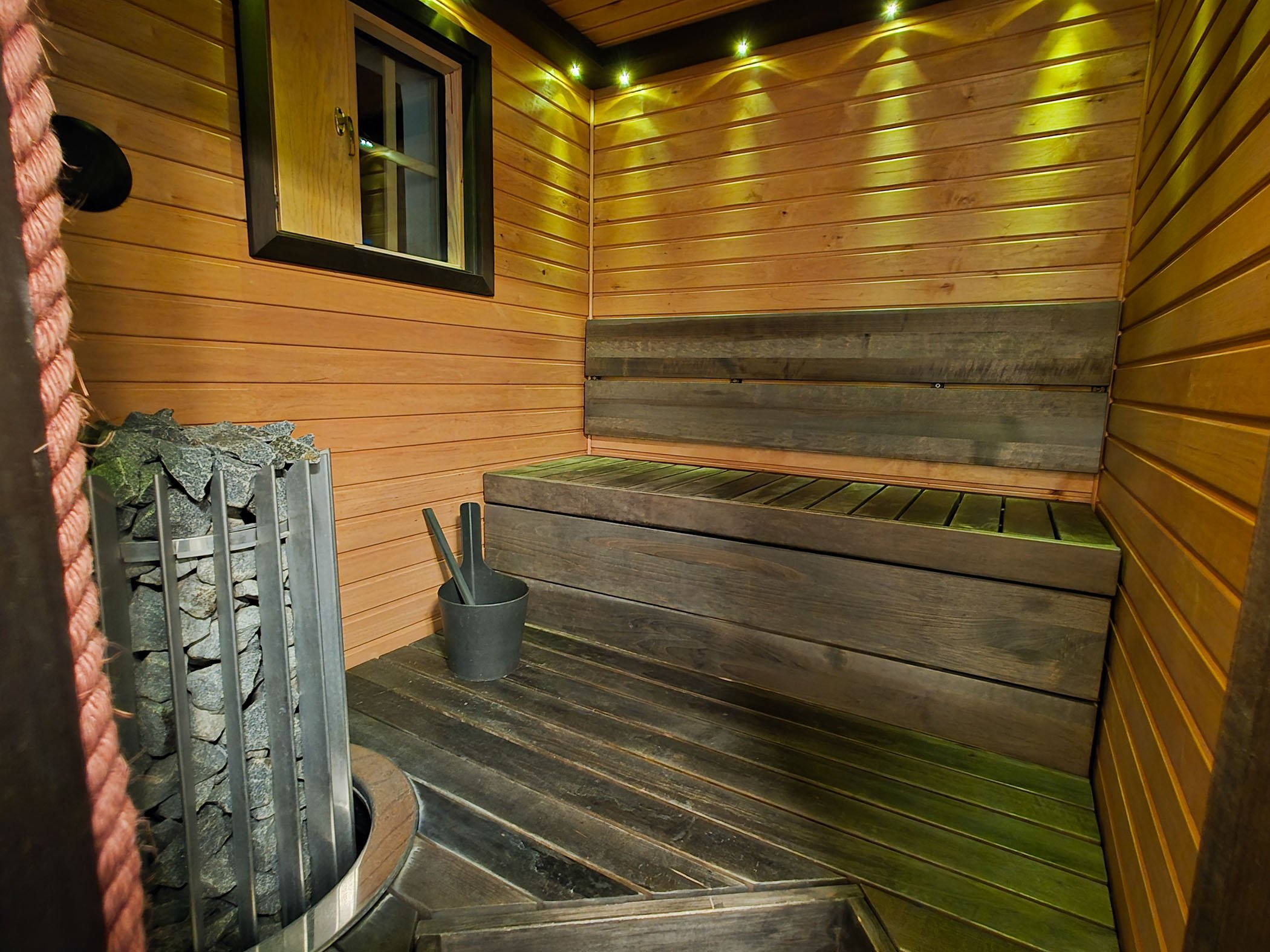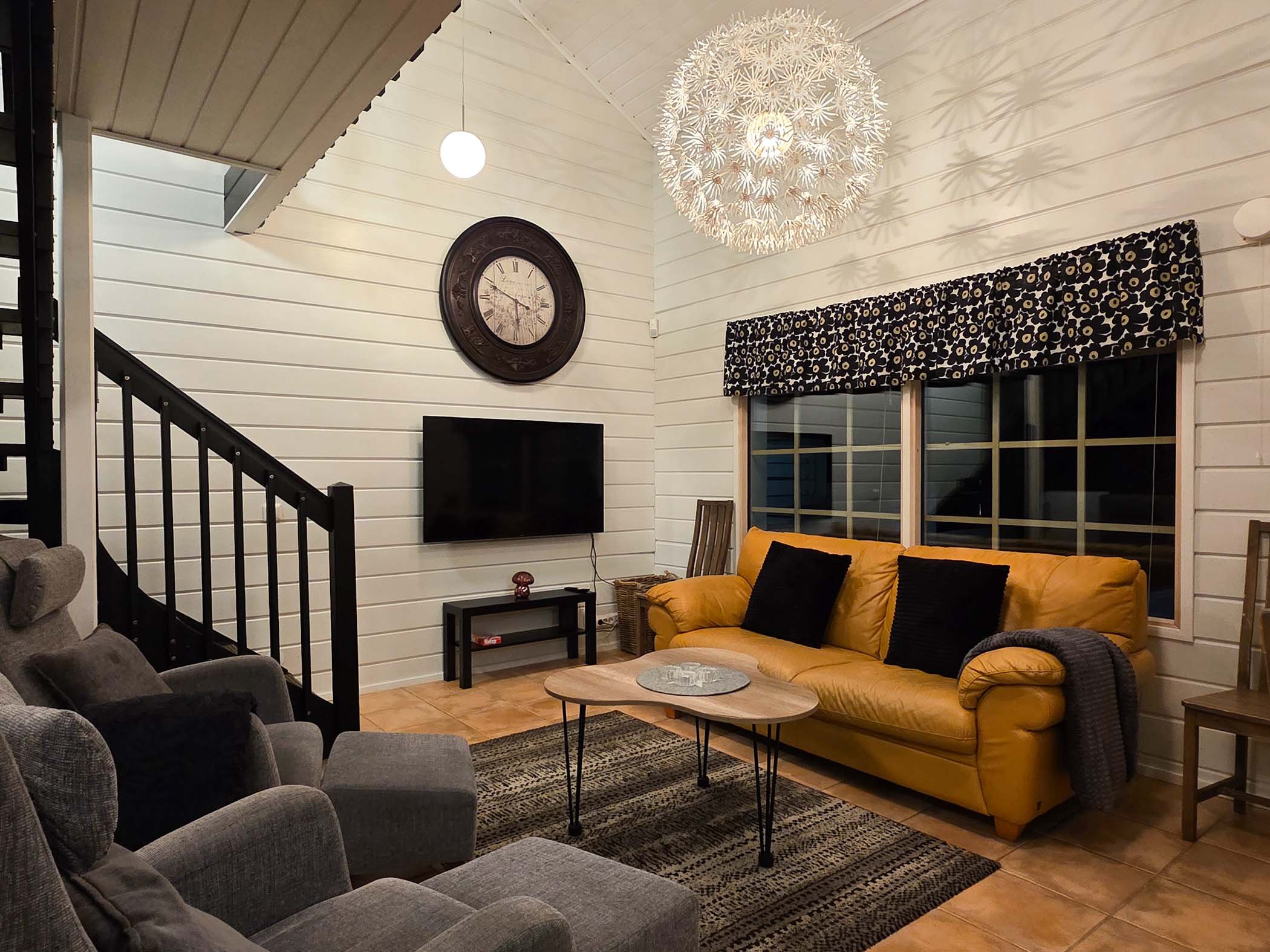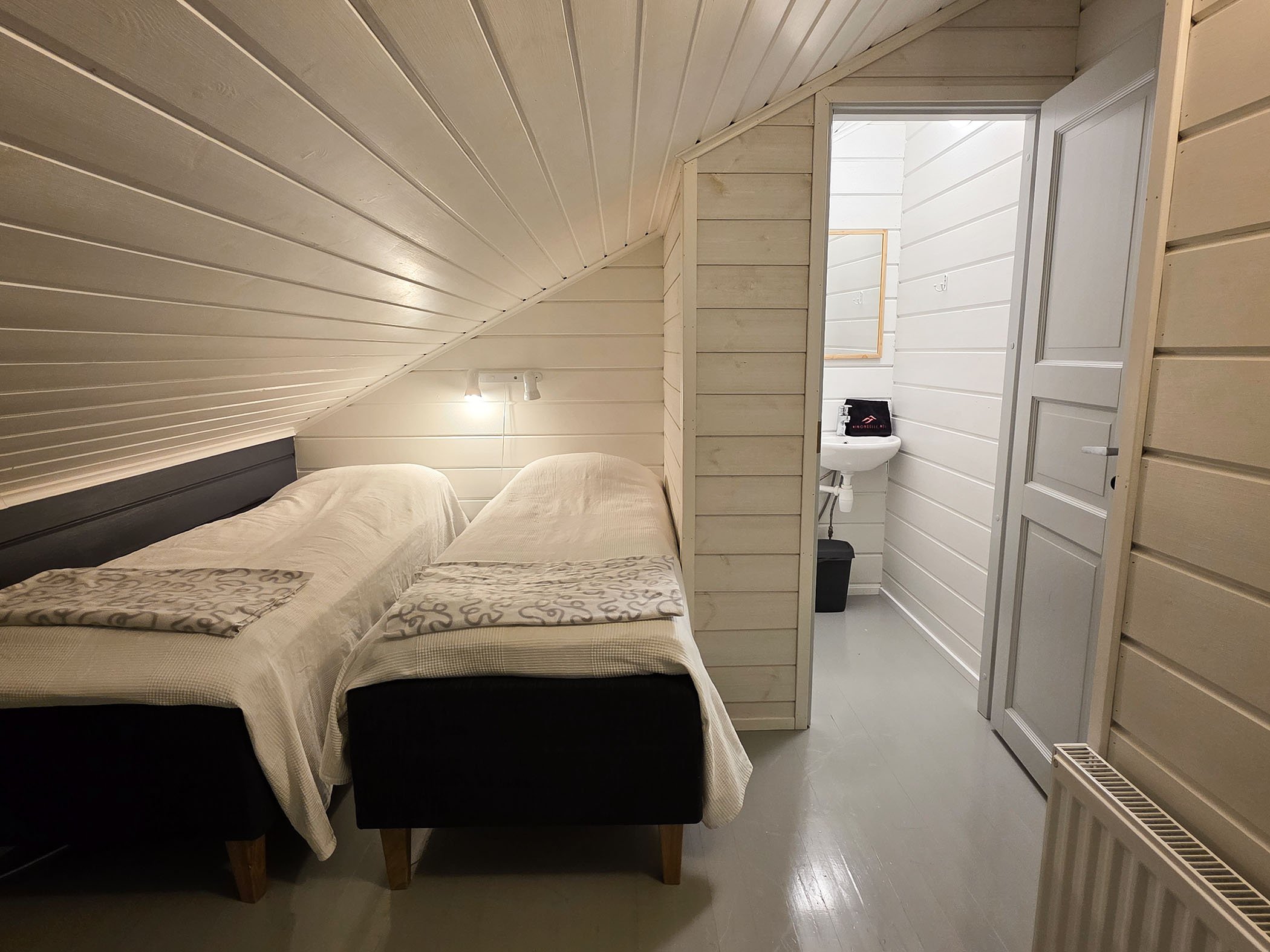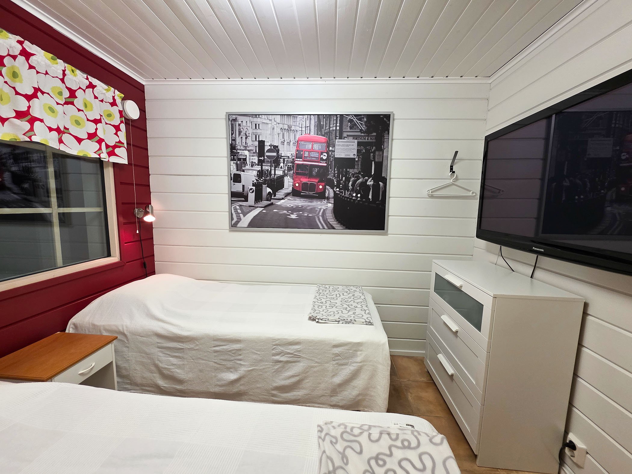 Kohteessa on neljä makuuhuonetta joista yksi sijaitsee pääkerroksessa ja loput kolme yläkerrassa. Jokaisessa makuuhuoneessa on makuupaikat kahdelle henkilölle. Jokainen makuuhuone on varustettu myös omalla televisiolla. Loma-asunnossa on kaksi erillistä wc:tä sekä erillinen kylpyhuone upealla saunalla. Kylpyhuoneesta löytyy myös pyykinpesukone, kuivausrumpu sekä kuivauskaappi. Kompaktissa keittiössä valmistuu lomaherkut käden käänteessä ja lisää kylmäsäilytystilaa tarjoaa extra jääkaappi.