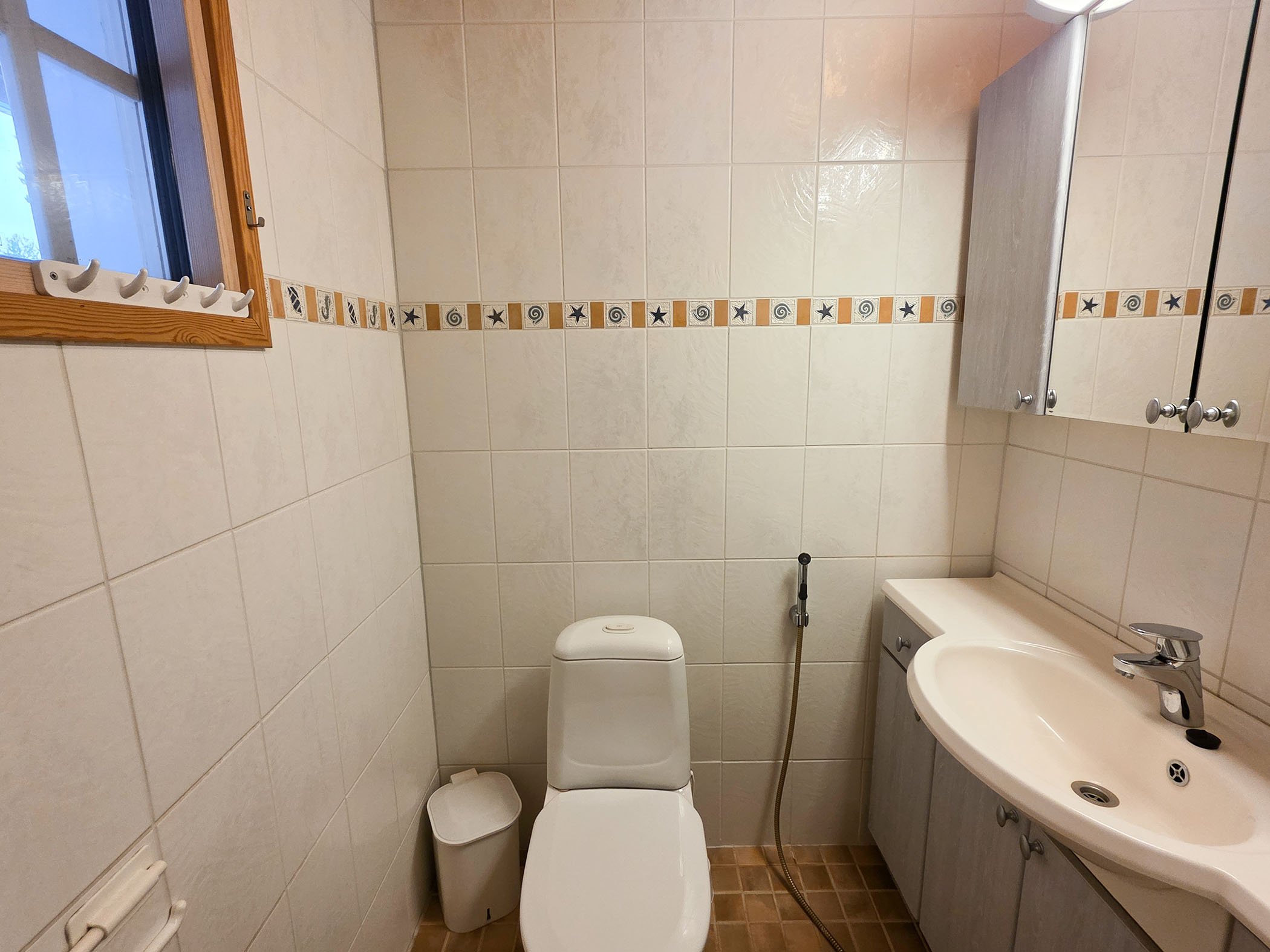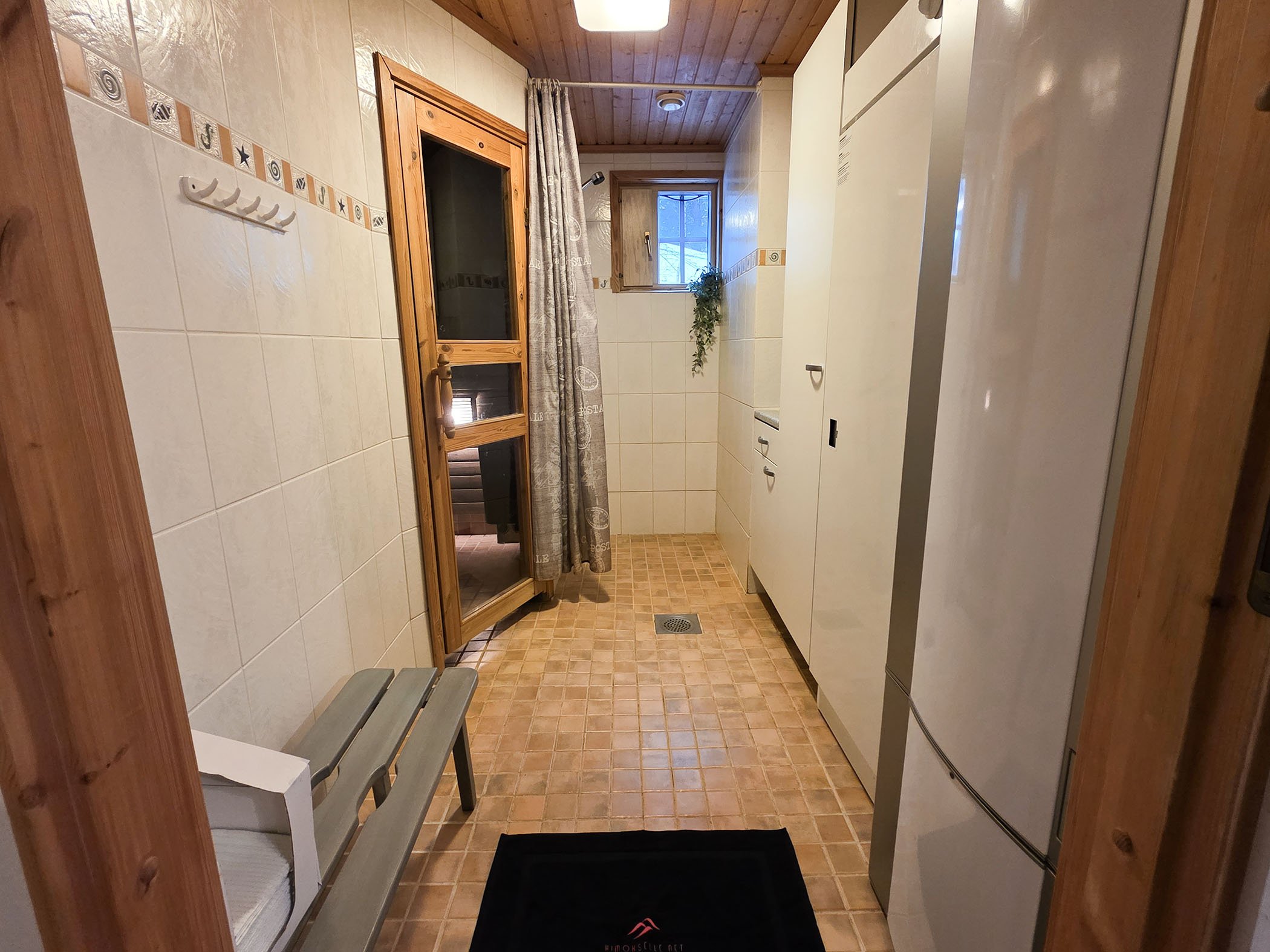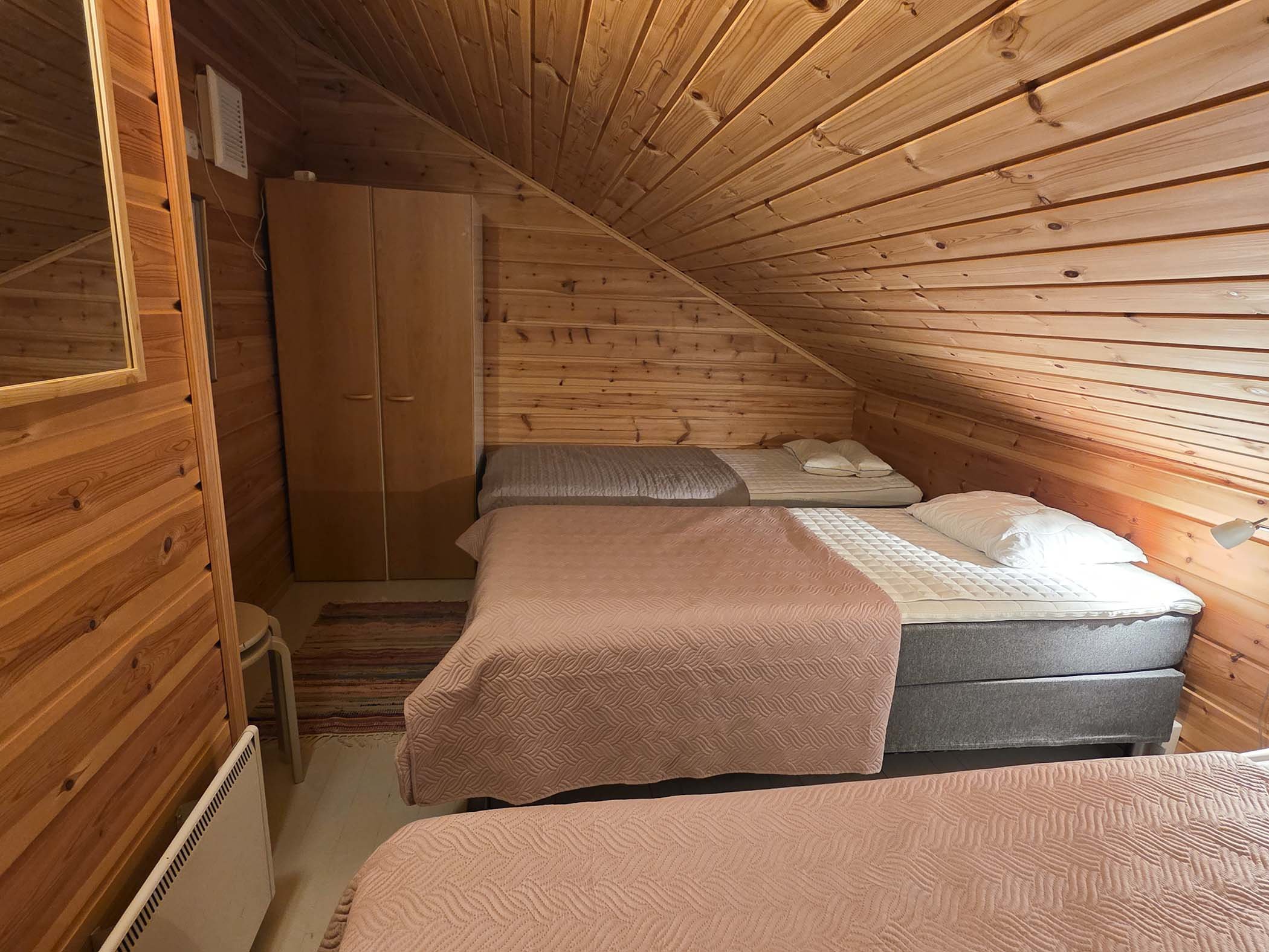 Kohteessa on neljä makuuhuonetta joista yksi sijaitsee pääkerroksessa ja loput kolme yläkerrassa. Jokaisessa makuuhuoneessa on makuupaikat kahdelle henkilölle. Loma-asunnossa on erillinen wc, sekä kylpyhuone saunalla. Kylpyhuoneesta löytyy myös kuivauskaappi. Kompaktissa keittiössä valmistuu lomaherkut käden käänteessä ja lisää kylmäsäilytystilaa tarjoaa extra jääkaappi.