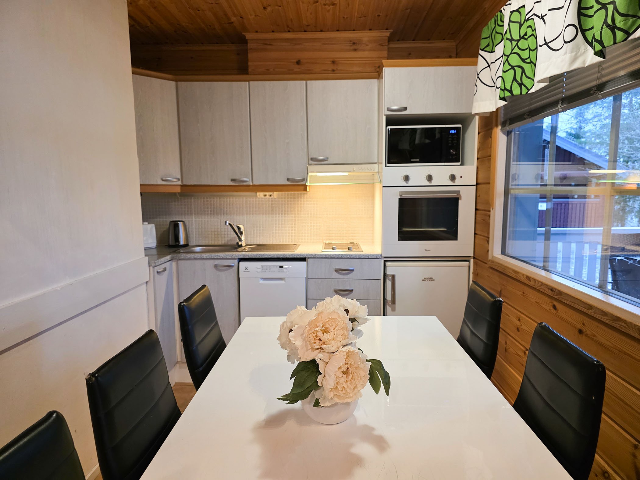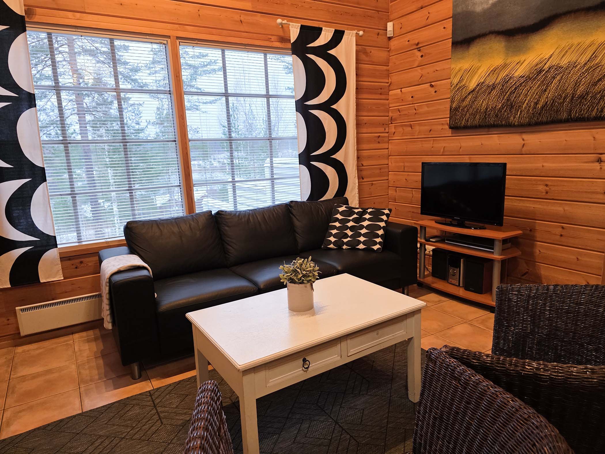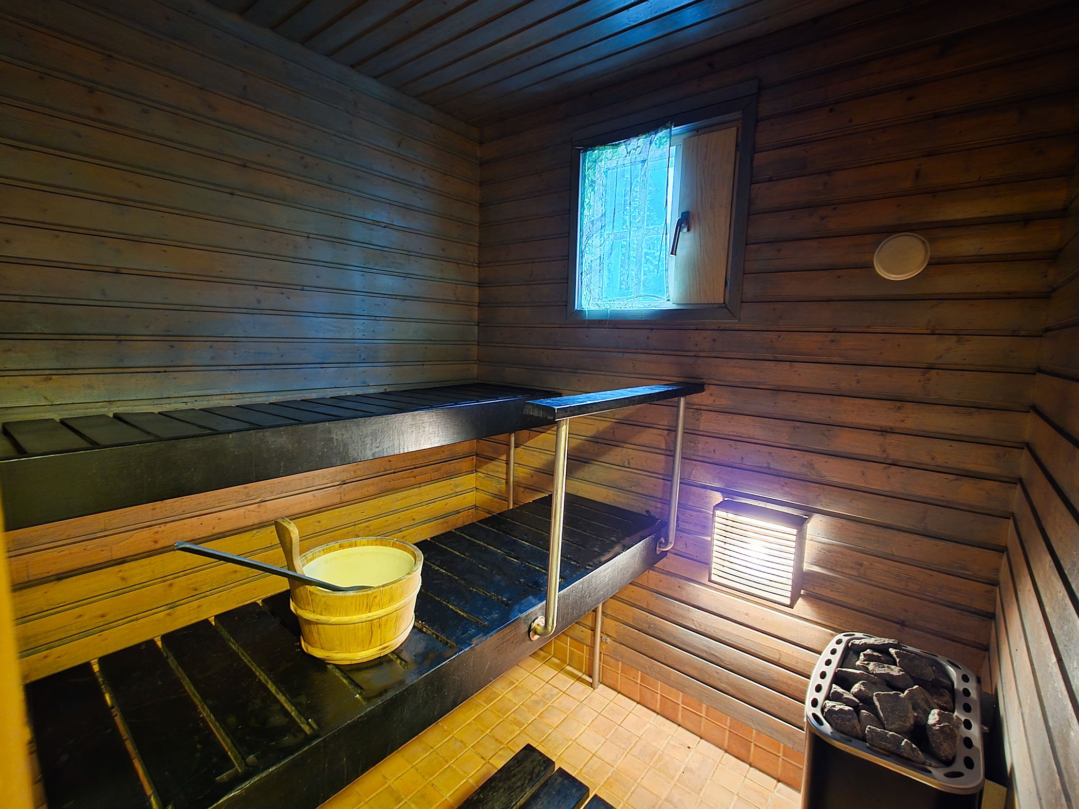 Kohteessa on neljä makuuhuonetta joista yksi sijaitsee pääkerroksessa ja loput kolme yläkerrassa. Jokaisessa makuuhuoneessa on makuupaikat kahdelle henkilölle. Loma-asunnossa on erillinen wc, sekä kylpyhuone saunalla. Kylpyhuoneesta löytyy myös kuivauskaappi. Kompaktissa keittiössä valmistuu lomaherkut käden käänteessä ja lisää kylmäsäilytystilaa tarjoaa extra jääkaappi.