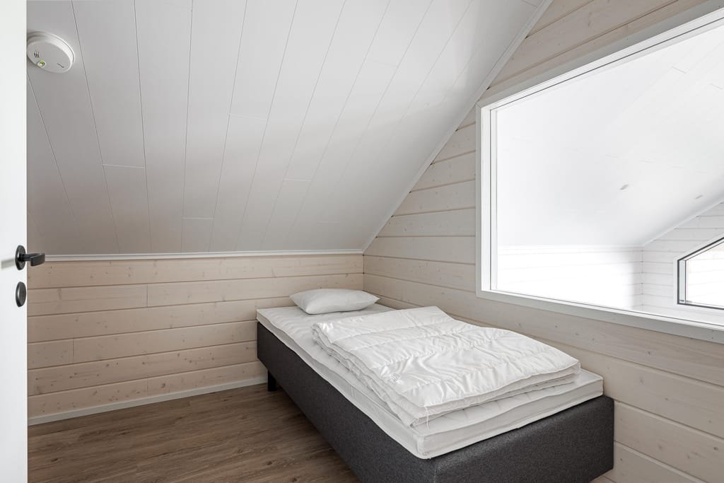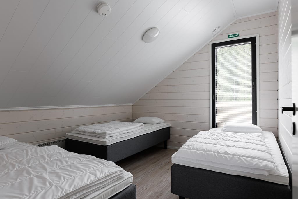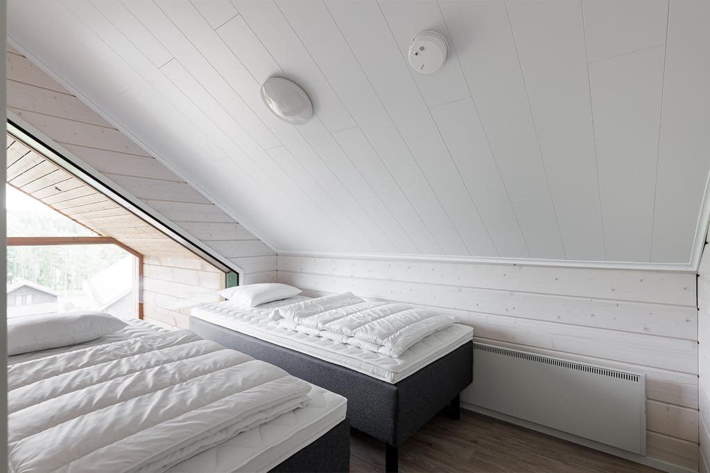 Yläkerrassa on parveke ja neljä makuuhuonetta, joista kahdessa on 2 erillistä vuodetta ja kahdessa 3 erillistä vuodetta. Kaikissa kerroksissa on oma wc. Lisäksi huvilassa on levitettävät vuodesohvat kolmelle henkilölle