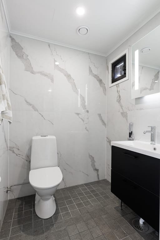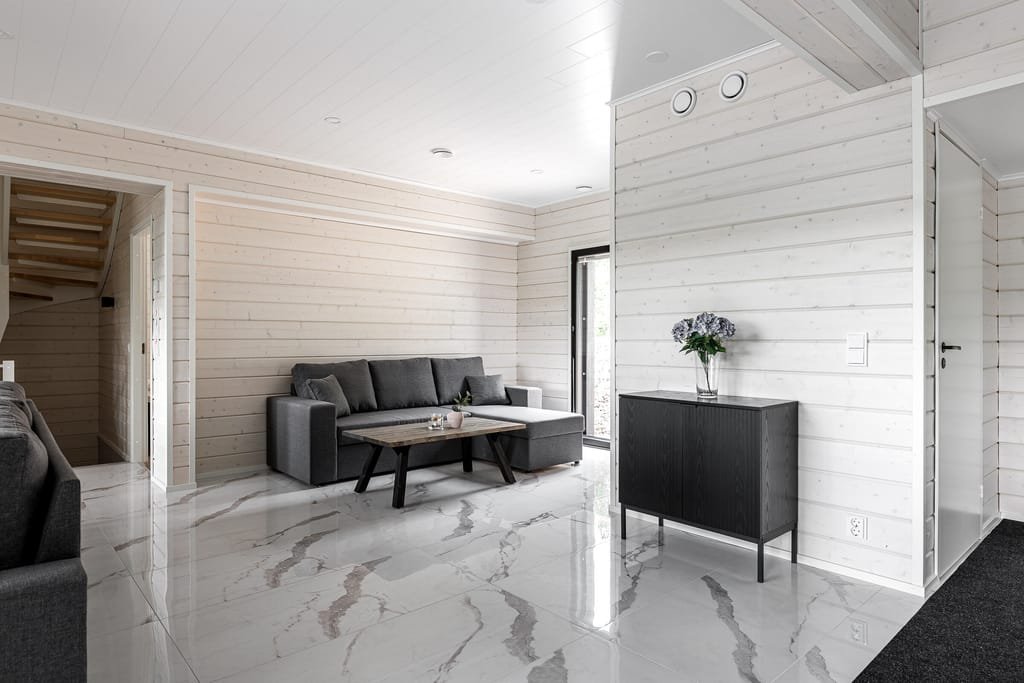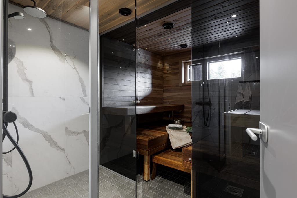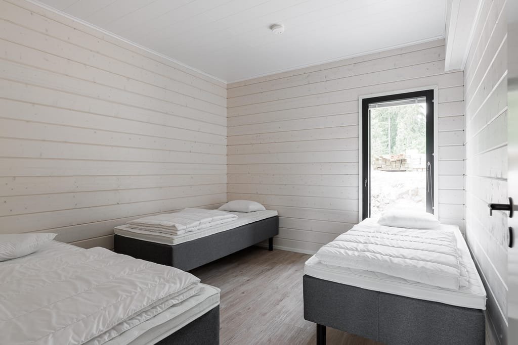 Huvilan sisääntulokerroksessa on oleskelutila, saunatilat sekä kolme makuuhuonetta. Kahdessa makuuhuoneessa on 2 erillistä vuodetta ja yhdessä 3 erillistä vuodetta. Saunatiloista pääsee kätevästi kulkemaan ulos terassille, jossa ulkoporeallas sijaitsee.
