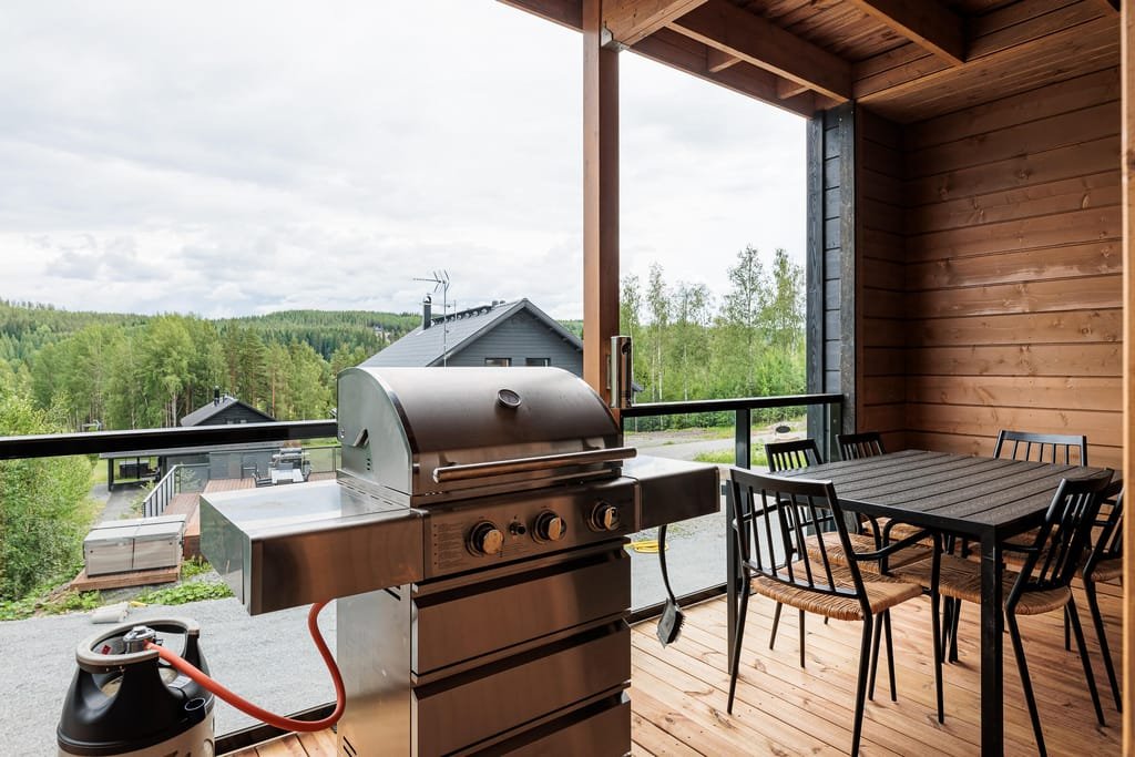 Huvila on varusteltu laadukkailla materiaaleilla, huonekaluilla sekä astiastoilla ja laadukkaan majoituksen kruunaa ulkoporeallas sekä kauniit maisemat golf kentän suuntaan.