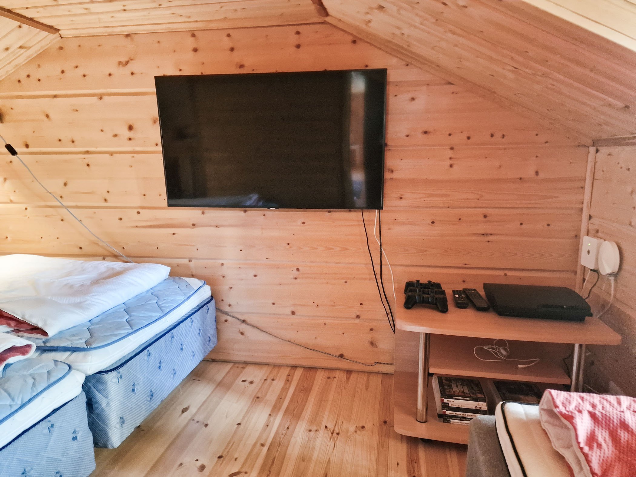 Huoneistossa on lisäksi varusteina mm. nettiyhteys, kaksi TV:tä, Playstation 3 ja pelejä sekä bilekaiutin.